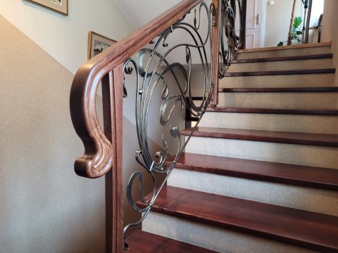 wir lackieren metallgeländer in jeder farbe aus der ral-palette. Es besteht die Möglichkeit der zusätzlichen Dekoration durch Patinierung. Es ist möglich, einen Holzhandlauf herzustellen - der Preis für eine solche Dienstleistung hängt von der Holzart ab - von 150 bis 300 PLN pro Meter.