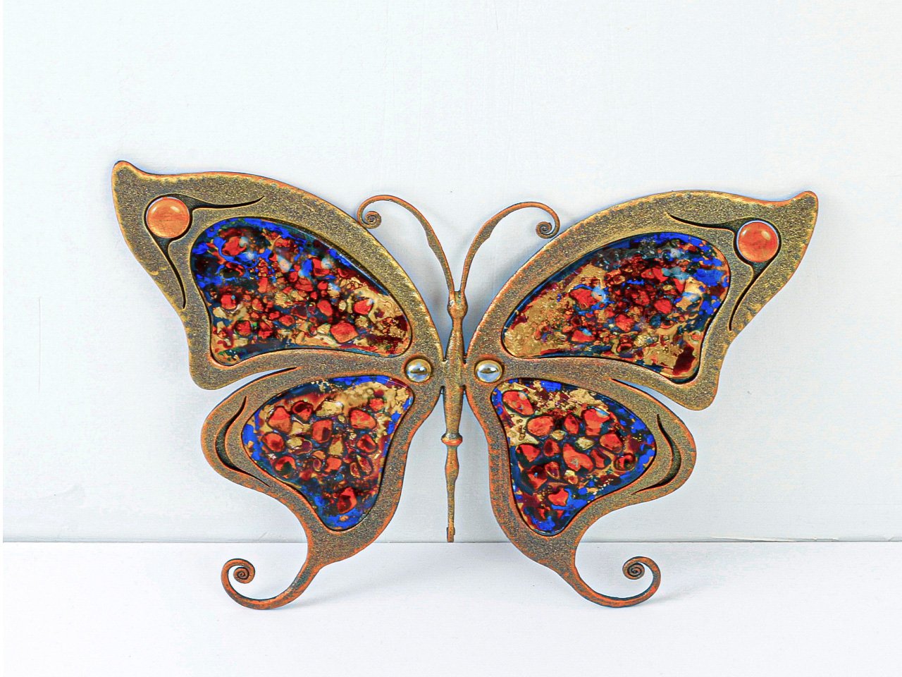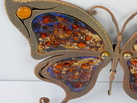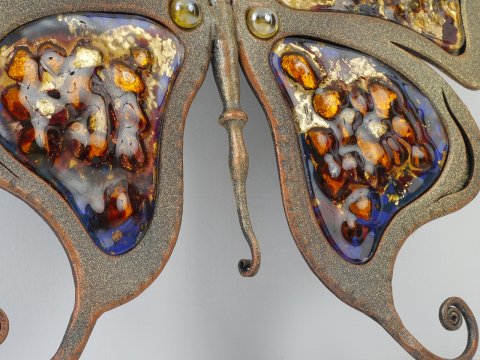 Eine bunte Metallrosette in Form eines Schmetterlings ist ein kleines Kunstwerk, das in unserer Werkstatt entsteht. Jedes von unseren Meistern erstellte Projekt ist einzigartig und wird mit Liebe zum kleinsten Detail hergestellt. Rosetten und Produkte aus unserer Schmiede überdauern mehr als eine Generation .